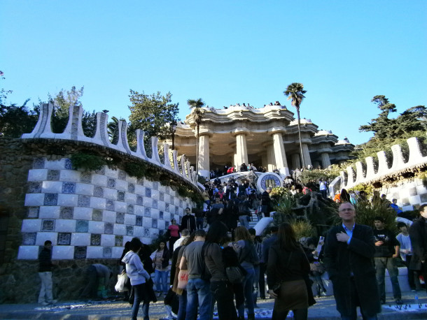 Dintre atracţiile „must visit” ale Barcelonei, am ajuns şi în Parcul Guell, un fel de carte de vizită a celebrului Antoni Gaudi. Situat pe colina Carmel, parcul a fost creat în perioada 1900 – 1914, fiind deschis pentru public de-abia în anul 1926. Se află pe lista Patrimoniului Mondial UNESCO din 1984 şi este format din grădini şi elemente arhitectonice deosebite.