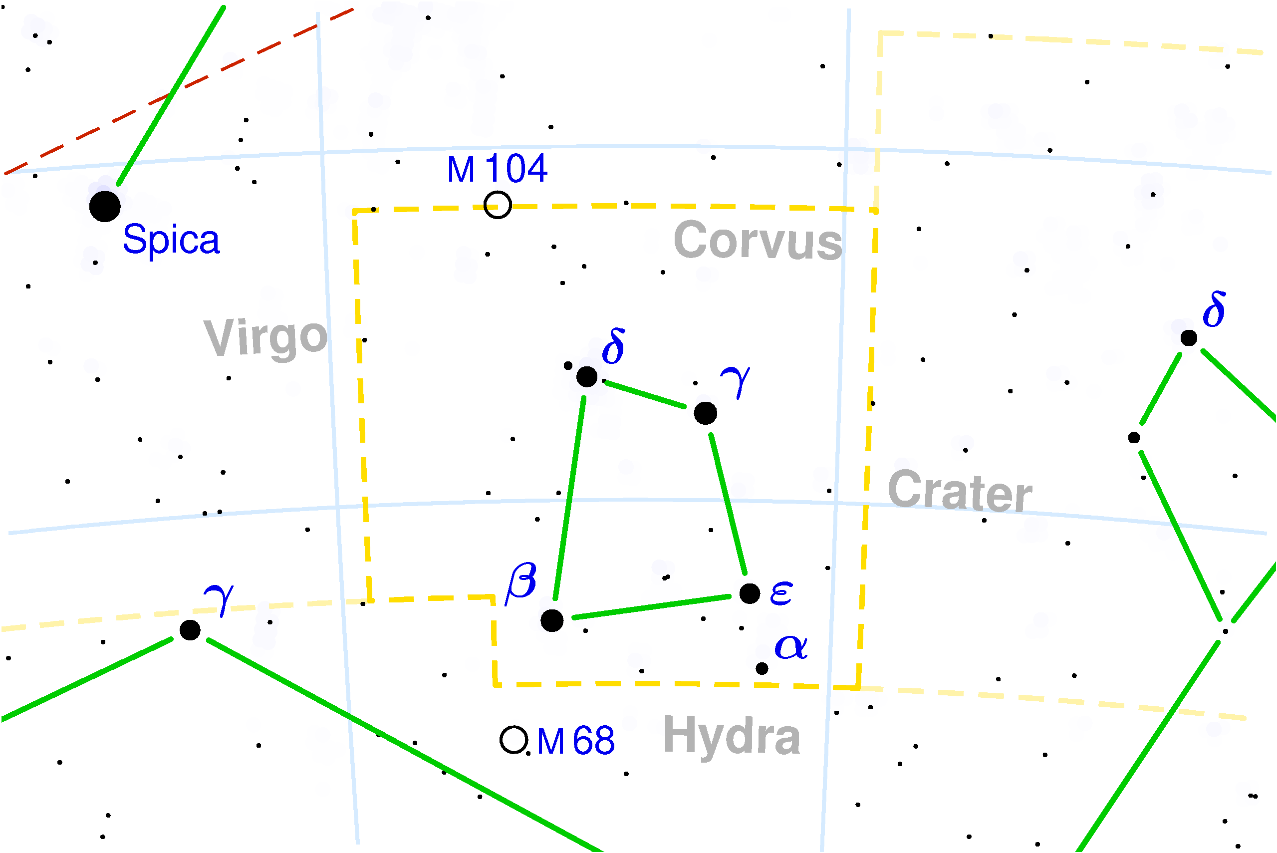 Unde putem vedea constelatia Corvus si care sunt obiectele care o compun?