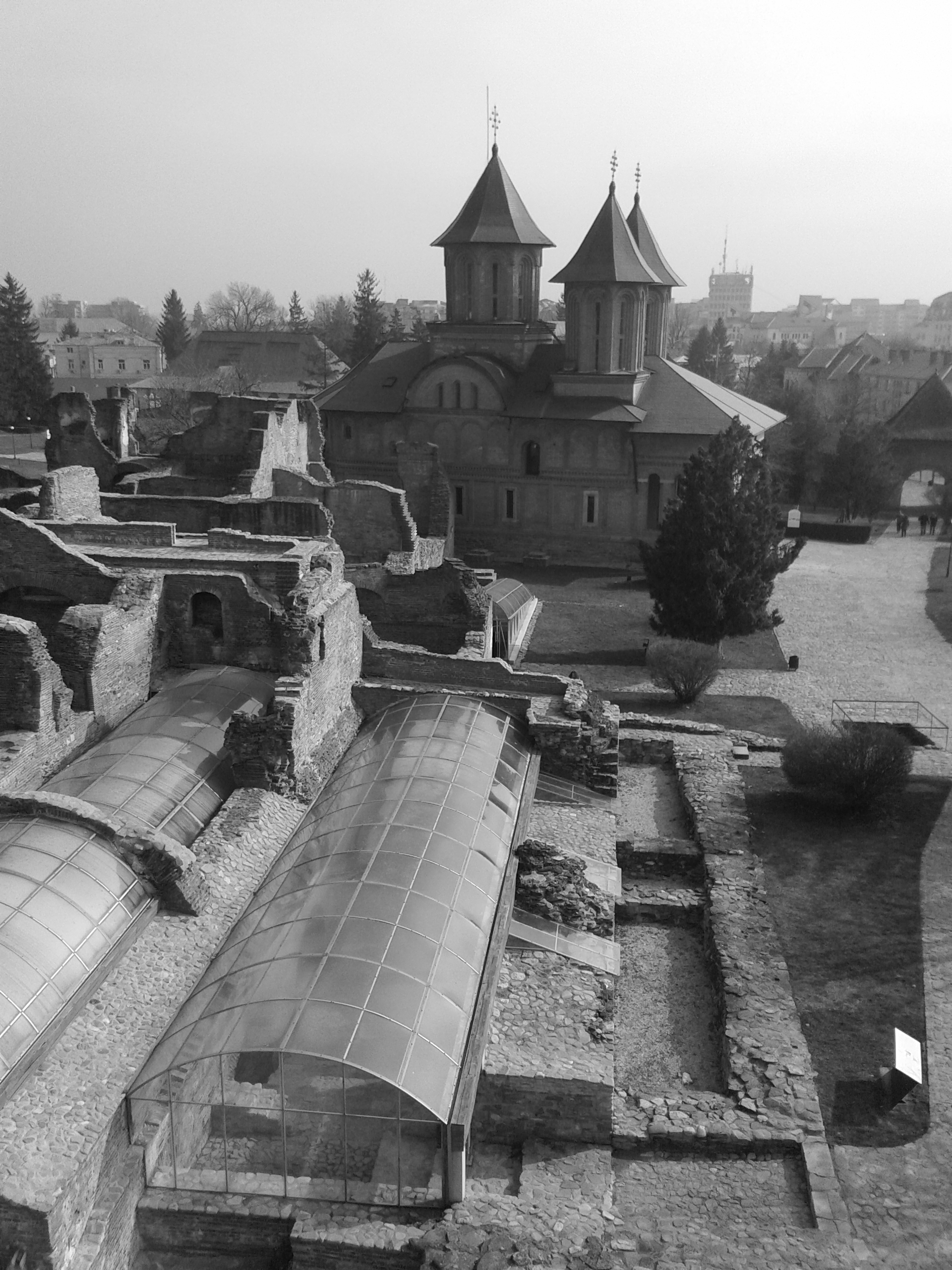 Şi-n sfârşit, am plecat şi la plimbarea pe care o aşteptam încă de când am plecat din Bucureşti. De unde stătea prietena mea, am plecat pe jos spre Complexul Naţional Muzeal Curtea Domnească. Ajunse la intrare, ne cumpărăm biletele de intrare şi-o las pe a mea prietenă să facă onorurile de gazdă şi să mă conducă spre ce aveam de vizitat. Încă de cum am făcut primii paşi în incita complexului muzeal, am reuşit să văd ceea ce aşteptam, și-anume, Turnul Chindei. Soarele începea şi el să-şi facă simţită prezenţă şi parcă totul era transpus sub o peliculă a timpului pierdut, pe care dacă reuşeai să o înlături, te ajuta să reintri în acea atmosferă medievală pe care o căutam. Toată atmosfera a fost însă stricată când am observat şi „micile” recondiţionări pe care restauratorii au crezut de cuvinţă că e bine să le-aducă. Deasupra ruinelor au pus sticlă, care faceă totul să pară ca un solar în care bunica creştea roşii, iar pe jos au pus gresie, care mă făcea să mă întreb cât de frumos aş aluneca dacă n-aş fi atentă. De asemenea, au amplasat anumite schele de metal care să faciliteze deplasarea, dar care tăiau din farmecul locului şi care se potriveau acolo mai ceva ca nuca-n perete. Am trecut peste toate astea şi-am ajuns în faţa turnului. Am stat câteva secunde în faţa lui şi tot ce am făcut, a fost să-l privesc.  Am început să urc scările din turn şi-n câteva minute am fost sus unde totul a fost răsplătit. Chiar dacă vedeam, în continuare, sticla şi schelele de metal, vedeam şi toate ruinele Palatului Domnesc, vedeam şi Biserica, vedeam tot ceea ce-mi dorisem să văd. Era frumos, iar eu eram fericită că pot vedea asta. Mi-am petrecut, acolo sus, câteva minute bune, timp în care tot ce am făcut a fost să admir, să mă bucur, să zâmbesc şi să fac câteva poze. La coborâre, parcă scările se înmulţiseră, dar asta cred că se datora faptului că atunci când ajungeam jos, ştiam că nu mă mai aştepta ceva la fel de frumos de văzut.
