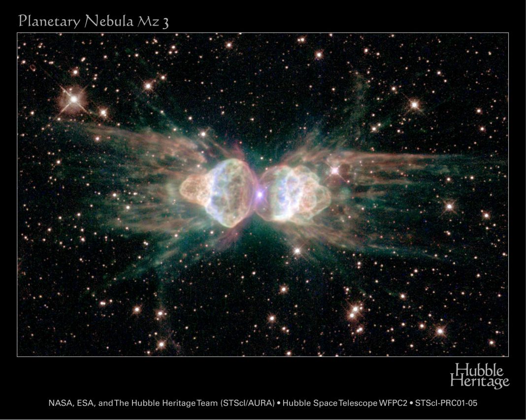 Observata cu ajutorul telescoapelor de la sol, nebuloasa Furnica seamana cu toracele si capul unei furnici comune. Imaginea facuta de Telescopul Spatial Hubble, care arata de zece ori mai multe detalii, dezvaluie “corpul furnicii” ca o pereche de lobi de foc ce ies in afara dintr-o stea aflata pe moarte. Imaginile realizate de Hubble ataca in mod direct vechile idei despre nebuloasele planetare – ultimul stadiu al stelelor asemanatoare cu soarele nostru. Aceste imagini ne arata ca soarta soarelui nostru s-ar putea sa fie mai complexa, mai interesanta si mai uimitoare decat si-au imaginat astronomii pana acum.
