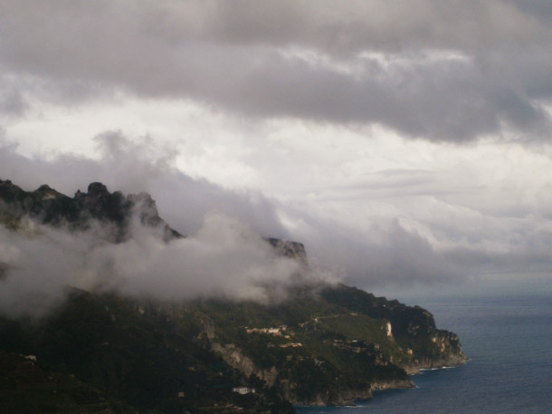 Chiar şi cu cerul întunecat, am avut ocazia să admir o privelişte deosebită. Drumul a început să fie cam obositor, din cauza pantei abrupte, iar ploaia s-a înteţit, din păcate, aşa că, până la urmă, la Ravello am ajuns cu autobuzul turistic – am avut noroc că a trecut unul pe lângă mine şi l-am oprit.