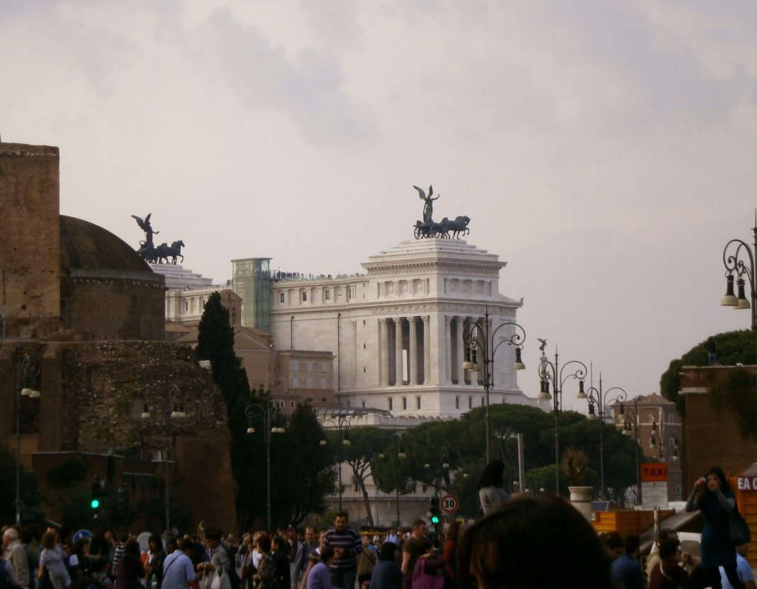 Pentru mine, Roma e un adevărat muzeu în aer liber, plus o suită de lecţii de cultură, arhitectură, gastronomie şi stil de viaţă. Plimbându-te pe străzile ei, la întâmplare, ai ocazia să înveţi mai multe decât dintr-un muzeu obişnuit. Datorită istoriei sale bogate, în acest oraş se împletesc stiluri de clădiri şi construcţii foarte diverse, clasice, baroce, moderne, gotice etc.. Roma e dovada vie că diferitele stiluri arhitecturale pot coexista armonios. Fiecare clădire are personalitatea ei şi este împodobită cu decoraţiuni, statui sau basoreliefuri ornamentale. Există şi atracţii controversate, ca de exemplu Il Vittoriano sau „Maşina de scris”, cum o numesc romanii, o clădire masivă situată în Piazza Venezia. Contururile ei se pot zări de departe, fiind un bun reper, în caz că ai rătăcit drumul. Nu este foarte apreciată de italieni, care o consideră prea opulentă, însă oferă o privelişte frumoasă asupra centrului aglomerat al oraşului.