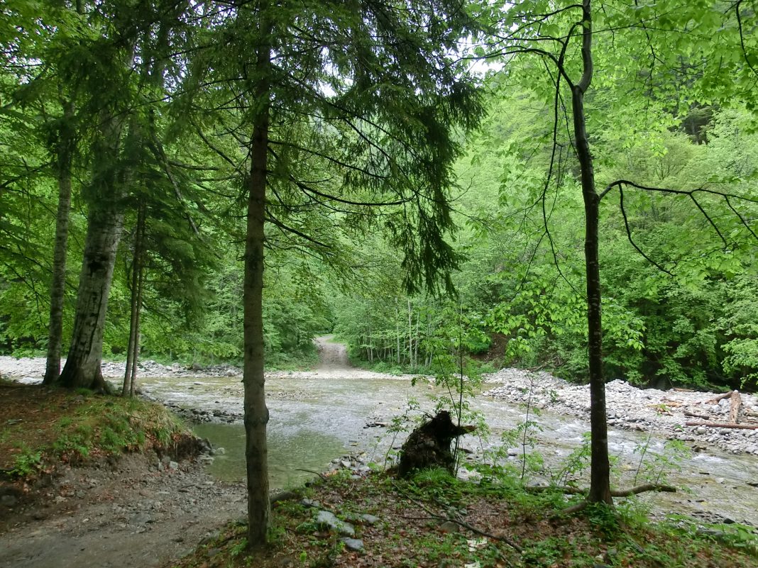 Imediat ce am pornit de la cabană, ne-am afundat în pădure. În două locuri, apa pârâului ne-a tăiat calea, trebuind să-i sărim albia. Eu am ales să trec prin apă, ştiind că trebuie să-mi drămuiesc cât se poate de bine energia şi să nu o irosesc inutil. După o perioadă de regim, cu alimentaţie sărăcăcioasă, mă simţeam puţin slăbită. O bună bucată de drum am urcat prin pădure, pe un covor de frunze uscate. Deasupra noastră, păsările se întreceau în triluri. Am întâlnit două poieniţe, printre care şi poiana din Curmătura Comarnice, un loc foarte frumos de stat cu cortul, având amenajată şi o vatră pentru foc.